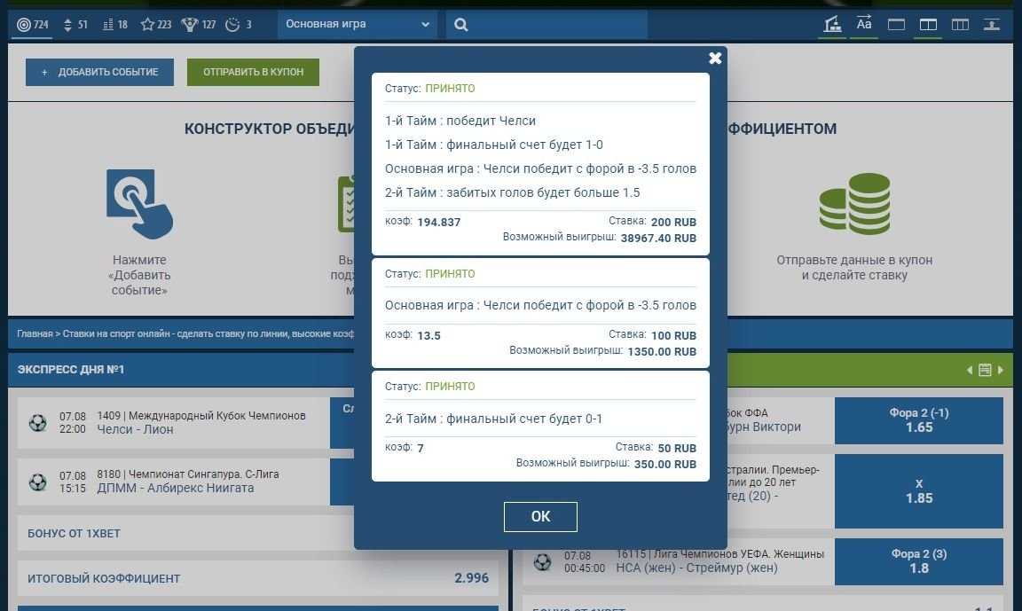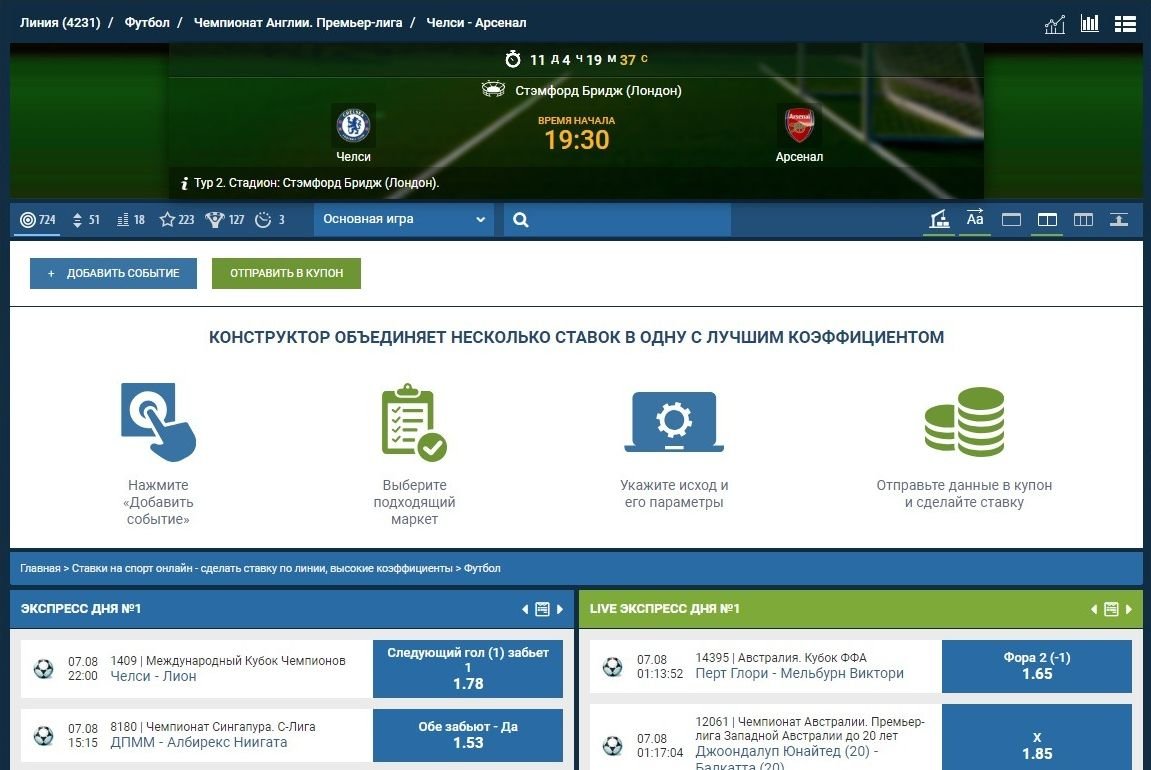 У игроков букмекерской компании 1xBet есть масса возможностей заработать на спортивных ставках. Конструктор ставок — еще одна классная новинка, с помощью которой можно объединить несколько ставок в одну с лучшим коэффициентом. Попробуй прямо сейчас!